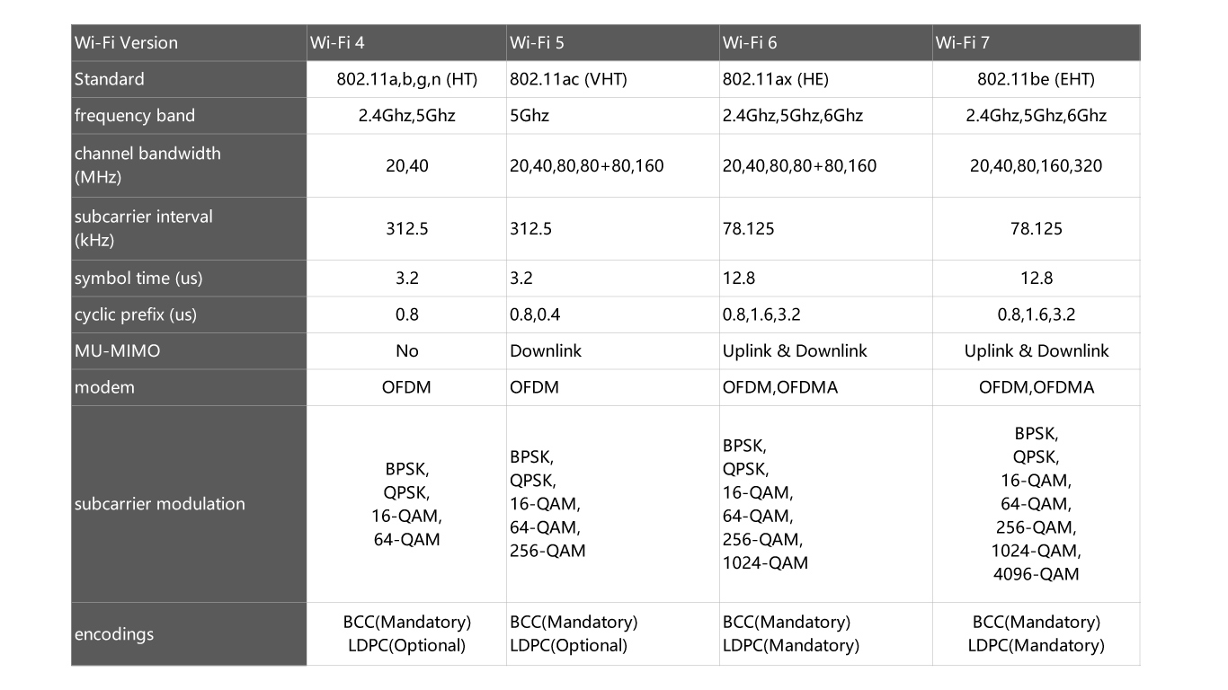 - Frequency Bands: While specific frequency bands are yet to be finalized, WiFi 7 is expected to explore higher frequency ranges, potentially including the 6 GHz band.